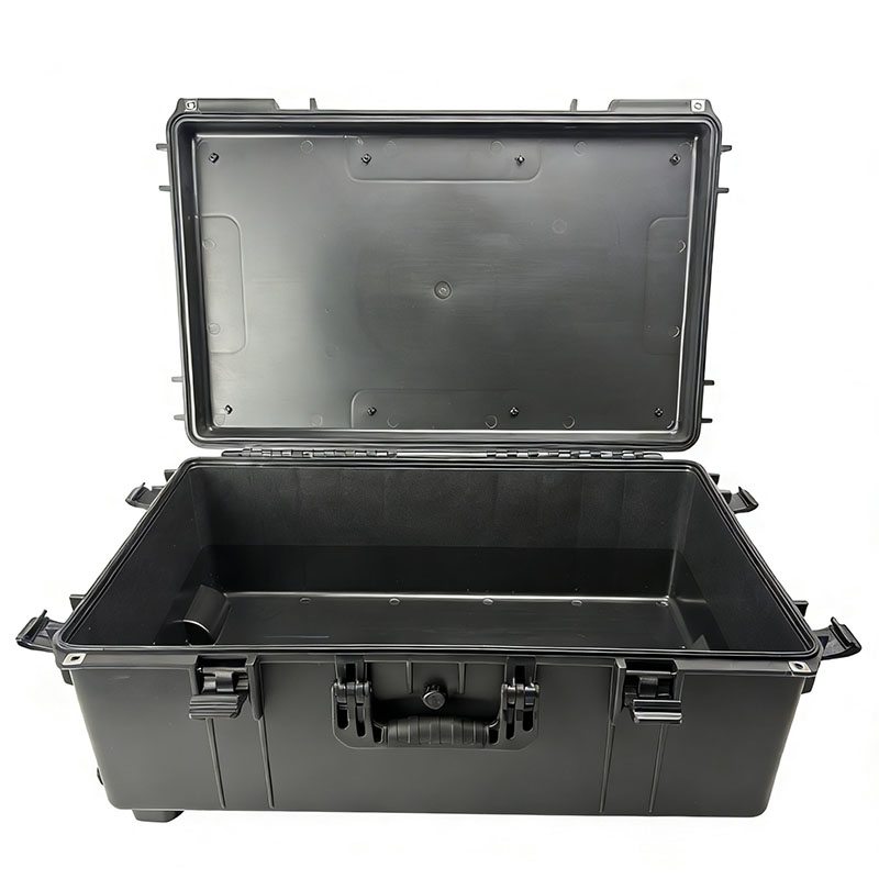 Lås upp ultimata utrustningstransportmöjligheter. Ningbo Weishuo Moulding and Plastic Products Co., Ltd. introducerar en stor dragstångsväska, som är en ledande tillverkare och leverantör i Kina. Dess nästan 90-liters inre utrymme (734,5*440*274 mm) är utformat för att bära en hel arbetsstation eller en stor mängd tung utrustning. Integrerat med ett mobilitets- och förstärkningssystem av industriell kvalitet lyfter det säkerhet och mobilitetseffektivitet till nya höjder. Fråga nu efter en skräddarsydd transportlösning för dina stora projekt eller team.