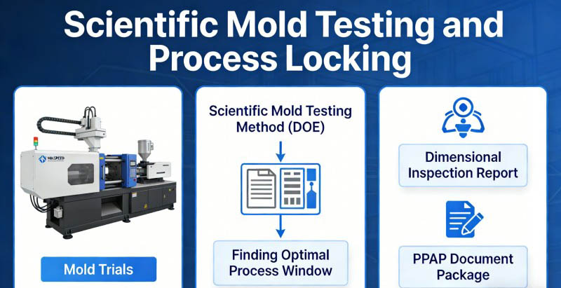 1. Rapid Prototyping & DFM: Vi tillhandahåller snabb designfeasibility-analys (DFM) och prototyprekommendationer baserade på ditt koncept för att påskynda designavslutningen. 2. Datadriven formdesign: Använder professionell programvara för full 3D-design, med djupgående simulering av flöde, kylning, strukturell styrka och skevhet för att uppnå "nära produktionskvalitet vid det första formförsöket." 3. Precisionsbearbetning på mikronnivå: Genom att använda precisionsutrustning i temperaturkontrollerade verkstäder säkerställer vi kritiska dimensionstoleranser inom ±0,02 mm. 4. Vetenskaplig provgjutning och processlåsning: Genomför provgjutning på våra höghastighetsprecisionsformsprutningsmaskiner. Använd Design of Experiments (DOE) för att identifiera optimala processfönster, leverera omfattande dimensionsinspektionsrapporter och PPAP-dokumentationspaket. 5. Produktionsstöd och kontinuerlig optimering: Vi tillhandahåller massproduktionssupport på plats och utför löpande optimering baserat på produktionsdata, och erbjuder tekniska rekommendationer för produktuppgraderingar och kostnadsreduktion.