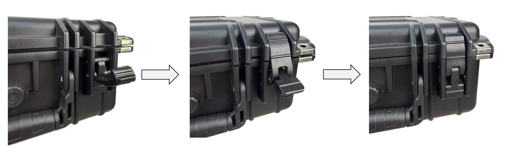 Korrekt användning Välj lämplig modell för skyddshölje baserat på utrustningens storlek. Konfigurera en skräddarsydd liner för att säkerställa att utrustningen är säkert fixerad. Kontrollera att tätningslisten är ren och fri från främmande föremål innan den stängs. Se till att spärrarna är helt stängda och att du hör ett tydligt "klick".