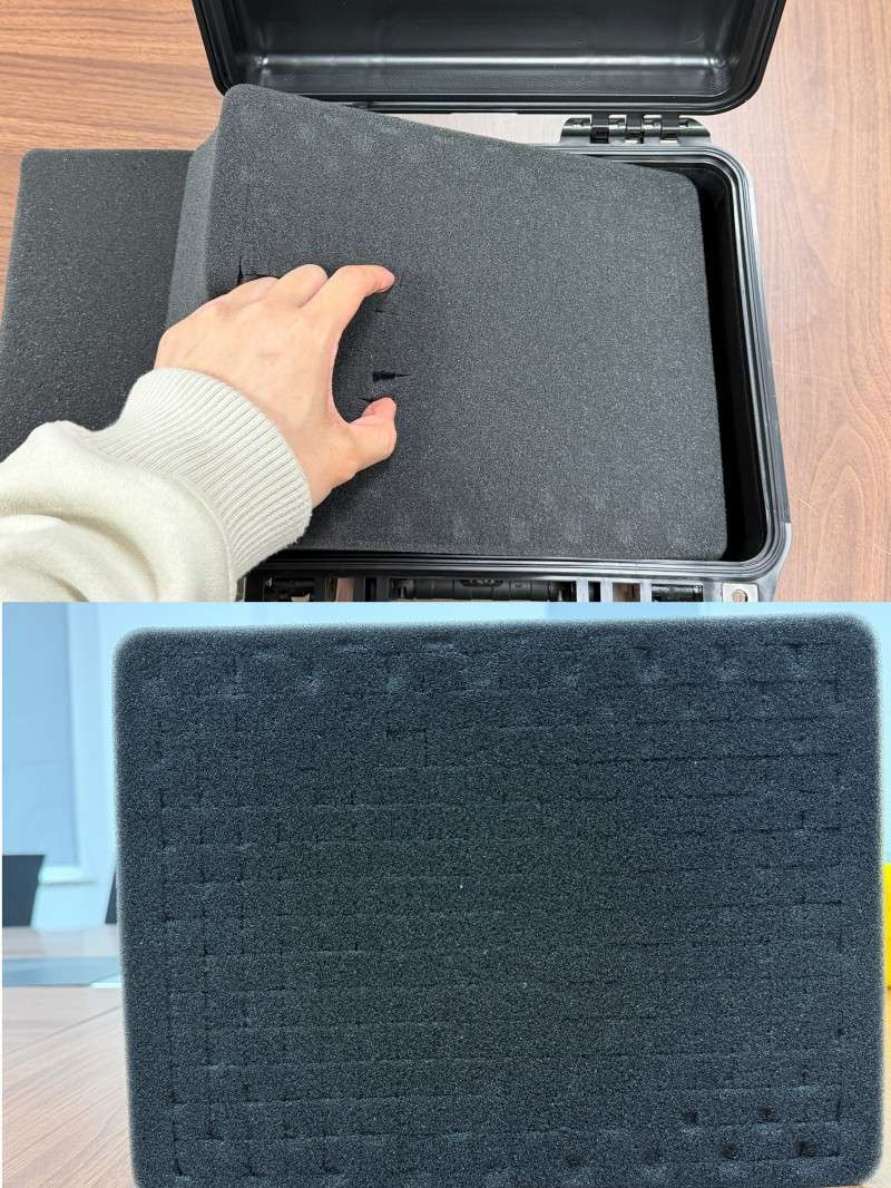 • Skräddarsydda interna lösningar Vi erbjuder en mängd olika interna konfigurationsalternativ: Standard dämpningssvamp: Toppöverdrag med vågigt äggskalsskum, bottenskydd med handrivet rutigt skum Anpassad EVA-svamp: Exakt stansad till formen på utrustningen för en perfekt passform Justerbart delningssystem: Flexibel justering av inre utrymme för att anpassas till olika utrustningskombinationer